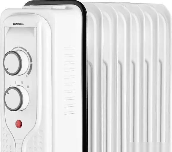 Масляный радиатор CENTEK CT-6205 предназначен для обогрева помещений площадью до 15 м². У него есть 7 секций, что обеспечивает равномерное распределение тепла. Модель работает с мощностью 1500 Вт и питается от сети 230 В. Управление осуществляется механически, есть три режима мощности и термостат, который помогает поддерживать комфортную температуру. В радиаторе есть колесики для удобства перемещения и автоматическое отключение при перегреве для безопасности. Цвет устройства — белый, оно компактное и легко помещается в комнату.