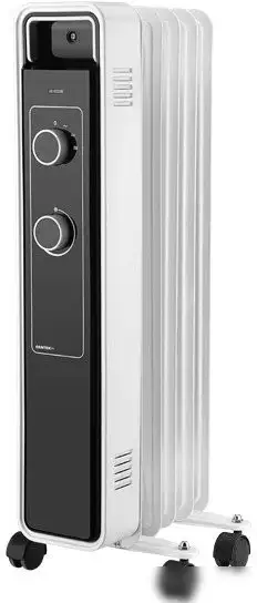 Масляный радиатор CENTEK CT-6221-5 предназначен для обогрева помещений площадью до 12,5 м². Он оснащён пятью секциями, что обеспечивает равномерное распределение тепла. Модель работает на мощности 1000 Вт и имеет механическое управление с тремя уровнями мощности (400/600/1000 Вт). Радиатор легко перемещать благодаря колесам в комплекте, а функция автоотключения защищает от перегрева. Устройство не имеет дисплея или функции управления со смартфона, что делает его простым в использовании. Этот радиатор отлично подходит для домашнего использования, обеспечивая безопасность и эффективный нагрев.