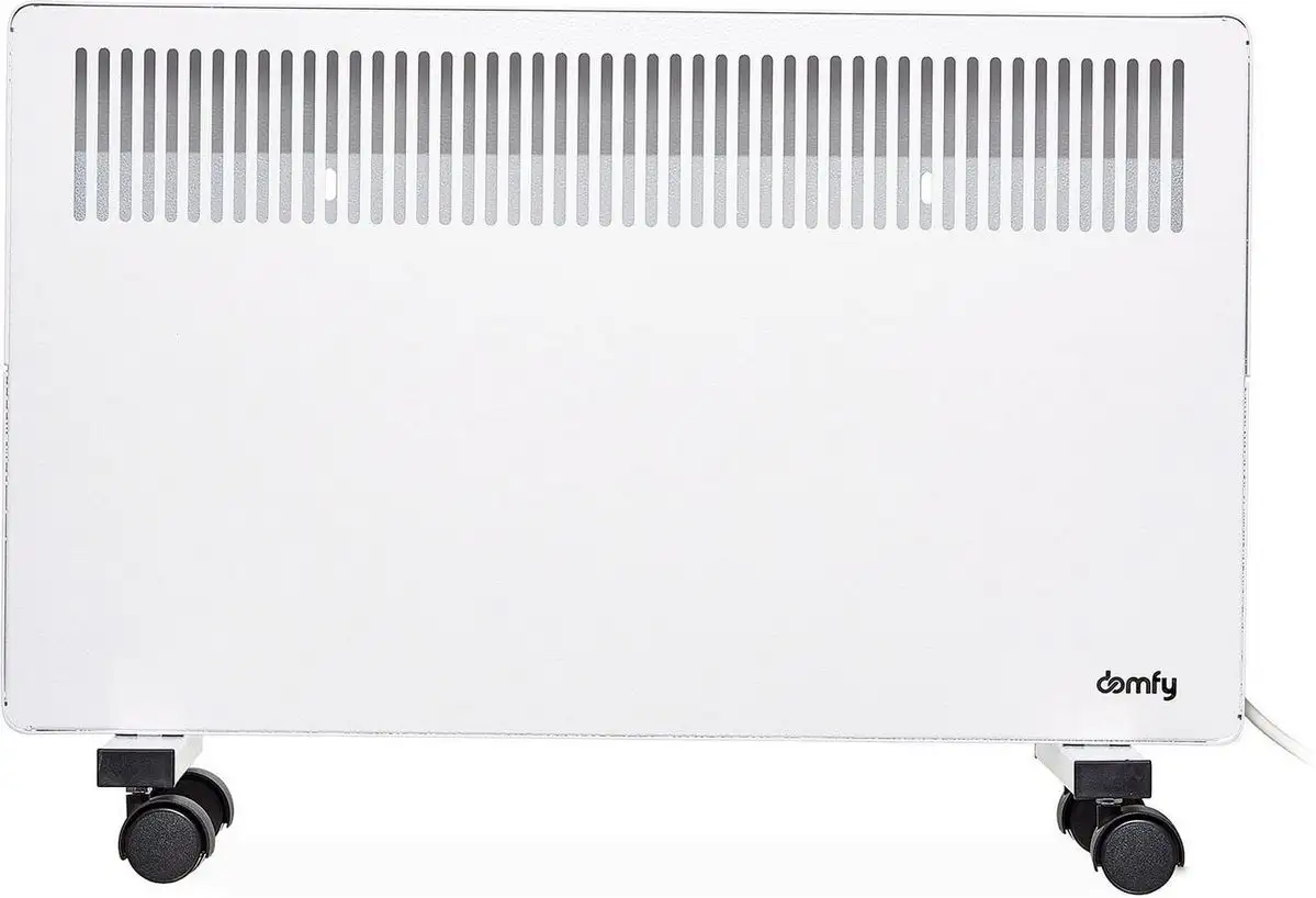 Конвектор Domfy DCW-CH1220 предназначен для обогрева помещений площадью до 25 м². Он работает на мощности 2000 Вт и подключается к сети с напряжением 230 В. Устройство выполнено в белом цвете и устанавливается на стену. Управление осуществляется механически с помощью рычага, что позволяет легко регулировать мощность и выбрать один из двух режимов работы. Конвектор оснащен термостатом, который поддерживает комфортную температуру без необходимости выбора конкретных настроек. Он автоматически отключается при перегреве, что обеспечивает безопасность эксплуатации. В комплект входит колесо для легкого перемещени, однако устройство не имеет дисплея, функции очистки воздуха, увлажнения или управления со смартфона. Его компактные размеры и легкий вес делают монтаж быстрым и удобным. Это простое решение для надежного отопления дома или офиса.