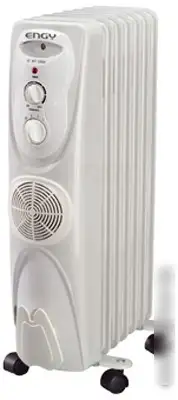 Масляный радиатор Engy EN-1307F имеет 7 секций и мощность 2000 Вт, что позволяет нагревать площадь до 20 м². Он управляется механически, что делает его простым в использовании. Регулятор мощности и встроенный термостат помогают поддерживать комфортную температуру. Радиатор оснащён режимом предотвращения замерзания и автоматически отключается при перегреве или опрокидывании для безопасности. В режиме обдува без нагрева устройство может использоваться для циркуляции воздуха. Нет встроенного ионизатора, увлажнения и дисплея, а управление осуществляется без пульта. Радиатор не предназначен для настенного монтажа, его легко перемещать по помещению. Среди дополнительных функций — возможность регулировки уровня мощности и автоматическое отключение при необходимости. Такой радиатор подойдет для обогрева небольших комнат и обеспечивает безопасность при использовании.