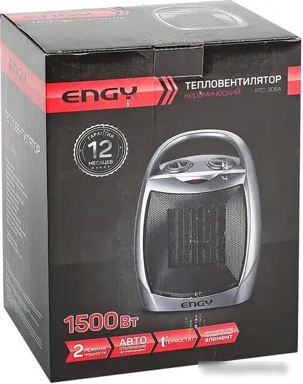 Тепловентилятор Engy РТС-308A — это устройство, которое быстро нагревает помещение с помощью керамического нагревательного элемента мощностью 1500 Вт. Управляется он механическим способом и позволяет регулировать уровень мощности — 750 или 1500 Вт. Встроенный термостат помогает поддерживать комфортную температуру, отключаясь при перегреве для безопасности. В устройстве есть функция обдува без нагрева, которая способствует вентиляции. Цвет вентилятора — серебристый, он легко впишется в любой интерьер. Тепловентилятор прост в использовании и не имеет сложных функций вроде дистанционного управления или таймера. Это хороший выбор для тех, кто ищет надежное и удобное средство для быстрого обогрева комнаты.