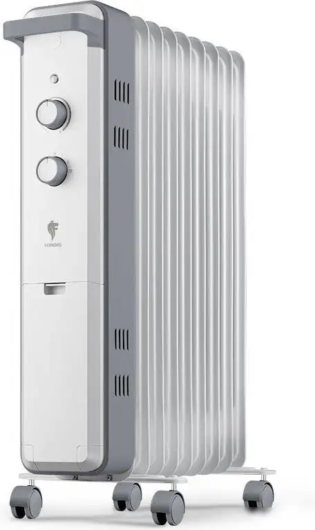 Масляный радиатор Leonord LE-2009 отлично подходит для обогрева помещений. Он состоит из 9 секций, которые быстро нагревают комнату благодаря мощности 2000 Вт. Управление осуществляется механически, что позволяет легко регулировать уровень мощности и включать или выключать устройство по необходимости. Радиатор оснащён термостатом, который поддерживает комфортную температуру, автоматически отключаясь при перегреве для безопасности. Он не имеет встроенного теплообменника воздуха или функции увлажнения, что делает его простым и надёжным. Радиатор оснащён колесами, что облегчает его переноску и передвижение по дому. В комплекте есть колесики для удобства перемещения. Размеры устройства — 112,5 см в ширину и 58 см в высоту, оно занимает немного места. Благодаря встроенной системе автоотключения при перегреве, устройство безопасно в использовании. Этот радиатор подойдет для тех, кто ищет надёжное и простое в управлении решение для обогрева дома или офиса.