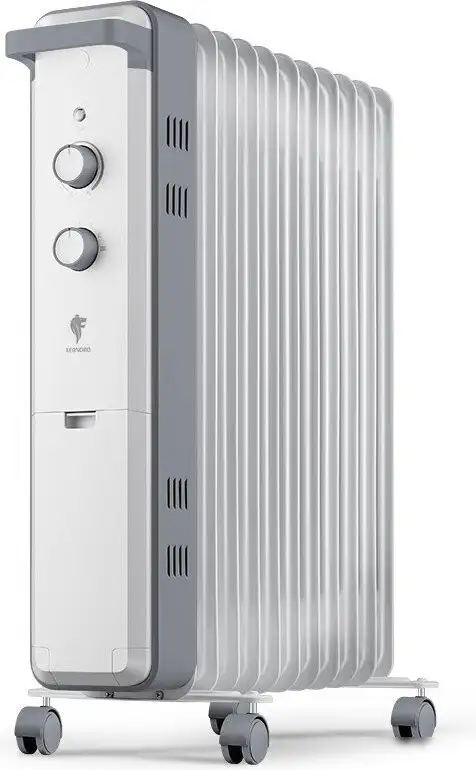 Масляный радиатор Leonord LE-2011 изготовлен в Китае и предназначен для обогрева помещений. Он состоит из 11 секций и мощностью 2 500 Вт быстро нагревает комнату и поддерживает комфортную температуру. Радиатор управляется механической системой, есть ручная регулировка уровня мощности и встроенный термостат, который помогает поддерживать выбранную температуру. В комплекте есть колёса для лёгкого перемещения по дому. Радиатор оснащён системой автоотключения при перегреве, что обеспечивает безопасную работу. Его цвет — белый, размеры составляют 137,5 см в ширину и 58 см в высоту. Устройство не имеет дисплея, функции очистки воздуха, увлажнения или управления со смартфона.
