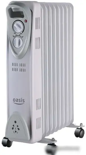 Масляный радиатор Oasis US-10 отлично подходит для обогрева помещений до 10 м². Он состоит из 5 секций, которые быстро нагреваются и равномерно распределяют тепло. Мощность устройства — 1000 Вт, что позволяет регулировать уровень тепла с помощью механического регулятора на 400, 600 и 1000 Вт. Радиатор оснащён встроенным термостатом, который автоматически поддерживает выбранную температуру и отключается при перегреве для вашей безопасности. Он не вращается и не имеет дополнительных функций, таких как очистка воздуха или влажность. Радиатор легко перемещается благодаря компактным размерам и весу 4,35 кг. Цвет устройства — серый, он хорошо впишется в любой интерьер. Кроме того, радиатор имеет функцию автоматического отключения при перегреве, что делает его безопасным в использовании. Он не предназначен для настенного монтажа и не оснащён пультом для дистанционного управления.
