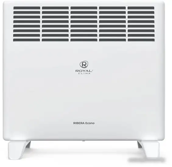 Конвектор Royal Clima Ribera Econo REC-RE1000M — это белый электрический прибор, который легко установить на стену или поставить на ножки. Он мощностью 1000 Вт способен обогреть площадь до 15 м². Управляется он механически, есть встроенный термостат, который помогает поддерживать комфортную температуру. Конвектор отключается автоматически при перегреве, что делает его безопасным в использовании. Он не обладает функциями Wi-Fi или дистанционного управления, его просто включить и регулировать уровень мощности. Этот конвектор отлично подойдет для тех, кто ищет недорогой и надежный обогреватель для дома или офиса.