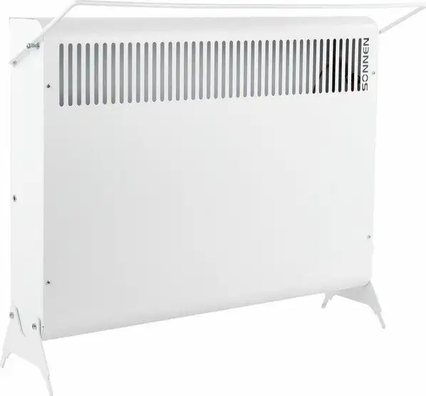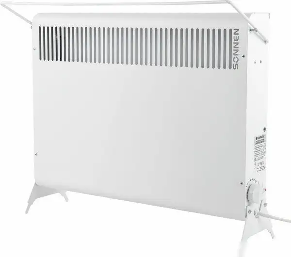 Конвектор Sonnen Mini МП-1500.2 предназначен для обогрева помещений площадью до 15 м². Он работает от сети 230 В и мощностью 1500 Вт, что обеспечивает быстрое и равномерное тепло. Конвектор управляется механической панелью с возможностью регулировки мощности на 750 Вт или 1500 Вт. Он не оснащён тепловентилятором, дисплеем и функциями очистки воздуха или увлажнения. В устройстве есть термостат для поддержания комфортной температуры и автоотключение при перегреве для безопасности. Монтаж осуществляют на стену, а в комплекте есть ножки для установки. В конструкции предусмотрен держатель для полотенца, что удобно для ванной или кухни. Конвектор лёгкий, весит около 4,5 кг, и легко переносится благодаря встроенным ножкам. Он не имеет умных функций или интеграции с приложениями, что делает его простым в использовании и обслуживании.