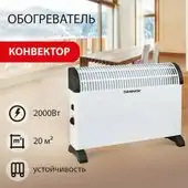 конвектор, спиральный, 2000 Вт, термостат, управление механическое, площадь обогрева 20 м2