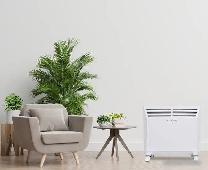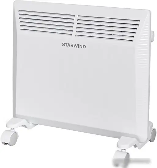 Конвектор StarWind SHV5210 — это компактное устройство для обогрева помещений площадью до 15 м². Он работает с мощностью 1000 Вт и легко регулируется вручную двумя уровнями мощности — 500 и 1000 Вт. Конвектор удобно монтируется на стену, что позволяет экономить место в комнате. Он оснащён термостатом и системой автоотключения, которая срабатывает при перегреве или опрокидывании, обеспечивая безопасность. Благодаря простому механическому управлению, его легко настроить даже без специальной подготовки. Этот конвектор не имеет встроенных функций очистки воздуха или увлажнения, что делает его максимально простым в использовании. Устройство выполнено в белом цвете и имеет размеры 46×8.3×40 см.