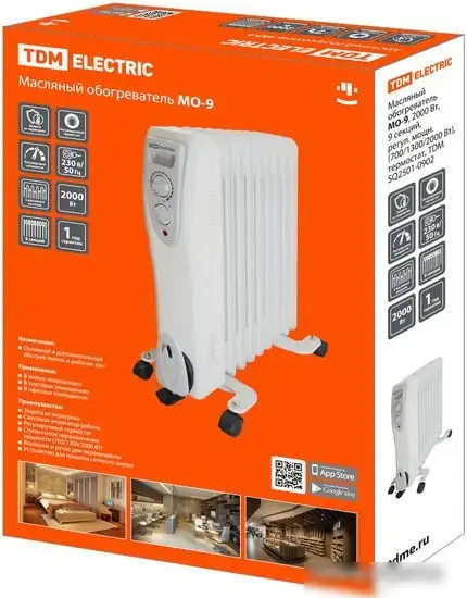 Масляный радиатор TDM Electric SQ2501-0902 оснащён 9 секциями, что позволяет быстро и равномерно нагревать помещение. Он работает от сети 220 В и имеет мощность 2000 Вт, обеспечивая эффективную работу. Управление механическое с возможностью регулировки уровня мощности — 700, 1300 и 2000 Вт — помогает выбрать оптимальный режим работы. Радиатор оборудован термостатом, который отключает устройство при перегреве для безопасности. Его размеры: ширина 29 см, глубина 44 см, высота 61,5 см, а вес составляет 10,4 кг, что делает его относительно компактным и удобным в использовании. Корпус устройства не влагозащитен, предназначен для использования в сухих помещениях. Есть функция автоотключения при перегреве, которая повышает безопасность эксплуатации. Радиатор не имеет встроенного дисплея, таймера и дистанционного управления, поэтому управление осуществляется вручную. Это устройство отлично подходит для быстрого обогрева помещений, где важна простота и надежность.