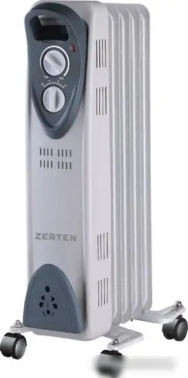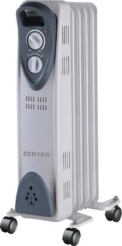 Масляный радиатор Zerten MRT-10 помогает теплообеспечению помещений площадью до 10 м². У него есть 5 секций и мощность до 1000 Вт, что позволяет быстро согреться. Управление осуществляется механически, есть регулятор мощности с тремя уровнями: 400, 600 и 1000 Вт. Встроенный термостат поддерживает выбранную температуру, а при перегреве радиатор автоматически отключается для безопасности. Он имеет колесики для удобства перемещения и легкий вес — всего 3,8 кг. Радиатор выполнен в бело-сером цвете и легко впишется в любой интерьер.