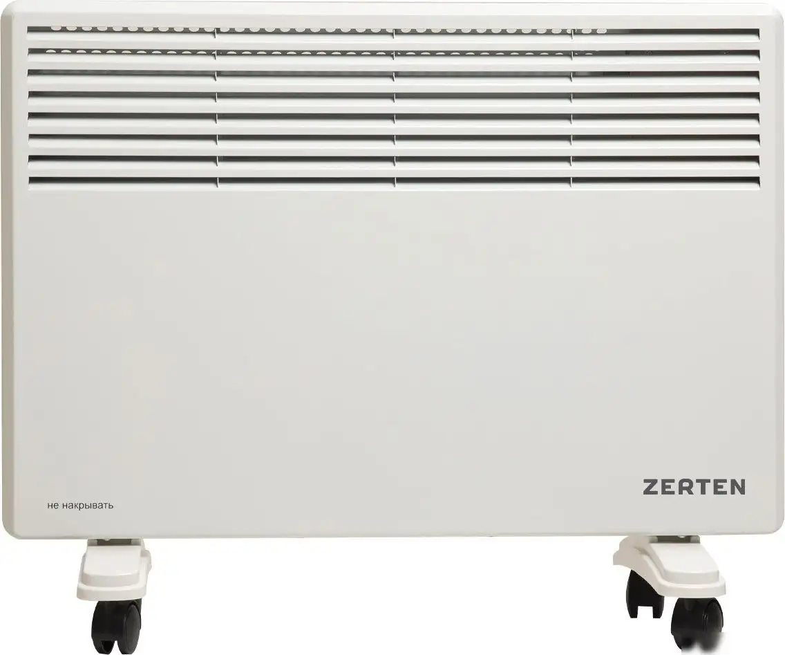 Конвектор Zerten ZK-15 предназначен для обогрева помещений площадью до 20 м². Он имеет мощность 1500 Вт и подключается к сети с напряжением 230 В. Управление осуществляется механическим регулятором, который позволяет выбрать уровень мощности без настройки точной температуры. Конвектор не создает теплообменник, тепловентилятор или дисплей, что делает его простым в использовании. Он оснащен автоматическим отключением при перегреве для безопасности и влагозащитным корпусом IPX4, подходит для ванных комнат и кухонь. Монтаж — настенный, устройство можно легко закрепить на стене. В комплекте есть колесики для удобства транспортировки. Вес устройства — всего 3,8 кг, размеры позволяют занять мало места. Этот конвектор надежно работает и безопасен благодаря встроенной защите.
