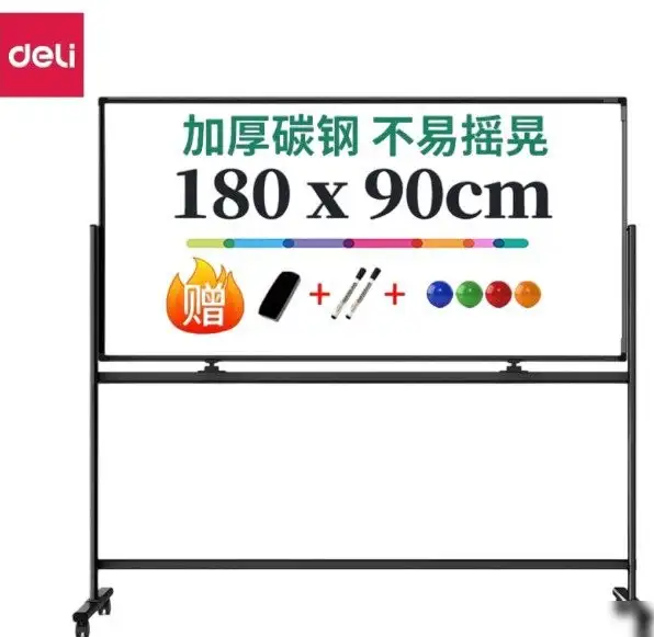 Магнитно-маркерная доска Deli 50107 отлично подходит для работы или учебы. Ее рабочая поверхность шириной 180 см и высотой 90 см позволяет вместить много информации и удобно работать. Доска установлена на колесиках, что делает ее легко переносимой и мобильной. В комплект входят два маркера, четыре магнита, полка для маркеров и щетка, что упрощает использование. Цвет доски — белый, она не имеет створок и занимает место на полу. Благодаря магнитной поверхности, на доске можно удобно закреплять документы и заметки. Эта доска весит около 18,2 кг, что считается приемлемым для такой модели.