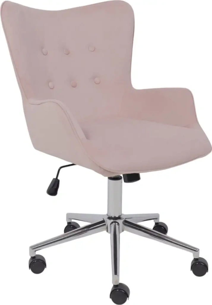 Офисное кресло AksHome Bella Chrome Velluto 37 выполнено из мягкой ткани велюр цвета пыльной розы, которая создаст уютную атмосферу в вашем офисе. Оно оснащено регулируемой по высоте газовой пружиной, что позволяет настроить кресло под ваш рост и обеспечить комфортное сидение. Спинка кресла цельная и регулируется по наклону, помогая поддерживать правильную осанку во время работы. Есть кожаный подлокотник, который обеспечивает дополнительную поддержку рук. Металлическая крестовина устойчива и долговечна. Передвижение обеспечивают резиновые ролики, подходящие для твердых покрытий. Максимальная нагрузка кресла — 100 кг. Благодаря компактным размерам оно легко вписывается в любой офисный интерьер. Это кресло отлично подойдет для длительной работы за компьютером или в офисе.