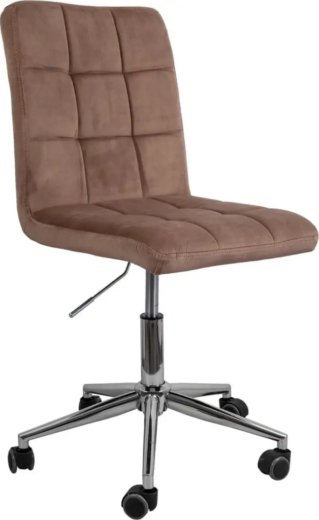 Офисное кресло AksHome Fiji предназначено для удобных посетителей и обладает мягким сиденьем и спинкой из велюра цвета капучино. Высоту сиденья можно регулировать в диапазоне от 44 до 54 см, а общая высота — от 86 до 96 см, чтобы обеспечить комфорт при работе. Кресло оснащено прочной металлической крестовиной с хромированным покрытием и пластиковыми роликами, которые облегчают его перемещение по офису. Оно не имеет подлокотников и подголовника, что делает его компактным и удобным для кратковременного использования. Благодаря механизму пиастра высота регулируется легко и быстро. Кресло поставляется в разобранном виде, что упрощает транспортировку и сборку. Велюровый материал приятен на ощупь и долговечен при правильном уходе. Стильный дизайн и современный внешний вид делают его гармоничным дополнением любого офиса.