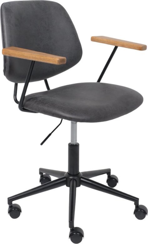 Офисное кресло AksHome Trix выполнено из прочной искусственной кожи в стильном винтажном черном цвете. Оно выдерживает нагрузку до 120 кг и имеет цельную спинку с мягкими подлокотниками для комфортной работы. Регулировка высоты сиденья от 42 до 52 см помогает адаптировать кресло под любой рост. Благодаря металлическому каркасу и легко очищаемой экокоже, кресло прослужит долго и будет выглядеть современно. Пластиковые ролики обеспечивают лёгкую мобильность по офису или дому. Простая сборка в разобранном виде делает доставку удобной. В конструкции отсутствует механизм качания, что упрощает её и повышает надёжность. Минималистичный дизайн хорошо сочетается с различными интерьерными стилями. Это удобное решение для работников, ценящих функциональность и стиль.