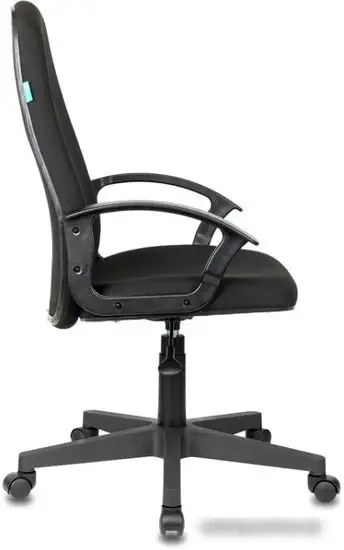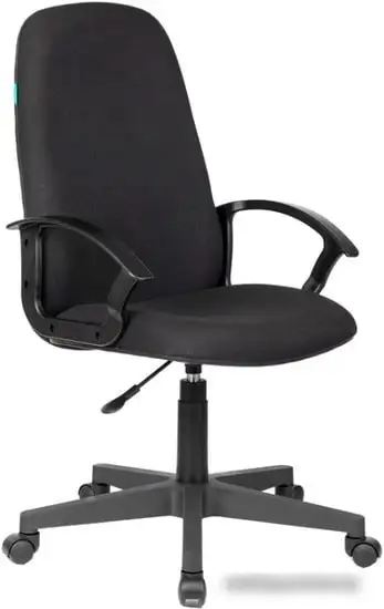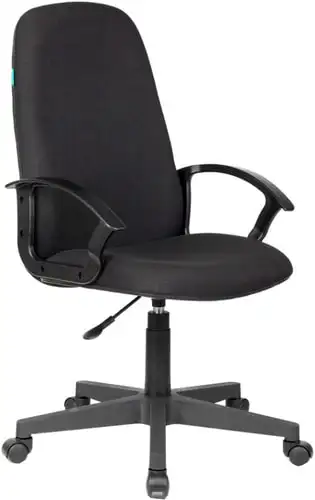 Кресло Бюрократ CH-808LT черного цвета подходит для руководителей и работает на тканевой обивке сиденья и спинки. Оно оснащено пластиковыми подлокотниками и крестовиной, что обеспечивает стабильность и удобство. Кресло имеет газовую пружину для регулировки высоты сиденья и пластиковые ролики, подходящие для ковролина. Максимальная нагрузка составляет 120 кг, что делает его надежным и прочным. У кресла отсутствует механизм качания и фиксированная спинка, поэтому оно лучше подходит для статической работы. Основные размеры включают ширину спинки 49,5 см и высоту от 43 до 54 см. Это простое и удобное кресло для офисных задач.