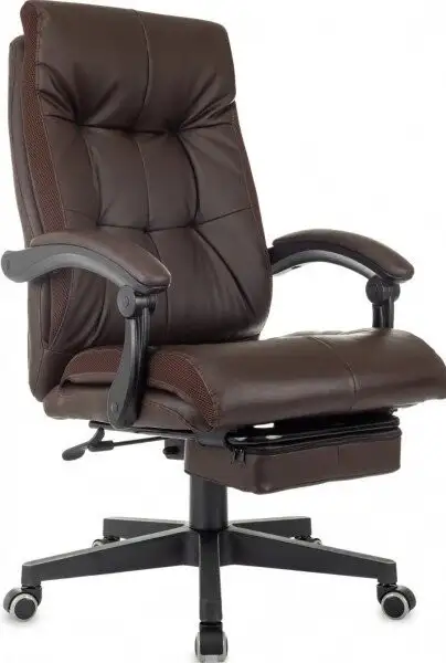 Офисное кресло Бюрократ CH-824MSG-BF выполнено из искусственной кожи в коричневом цвете. Оно оснащено подголовником и подлокотниками, что повышает комфорт при длительном сидении. Крестовина с роликами обеспечивает устойчивость и лёгкое перемещение, а газовая пружина позволяет легко регулировать высоту кресла. Механизм синхромеханизма позволяет синхронно регулировать наклон спинки и сиденья, а фиксируемый наклон до 130 градусов помогает найти удобное положение для отдыха или работы. Регулировка наклона спинки и подголовника помогает настроить кресло под индивидуальные нужды. Максимальная нагрузка до 120 кг гарантирует долговечность конструкции. Особенность модели — массаж и подставка, что создаёт дополнительные приятные ощущения. Размеры кресла обеспечивают простор и комфорт, а надёжная конструкция прослужит долго.
