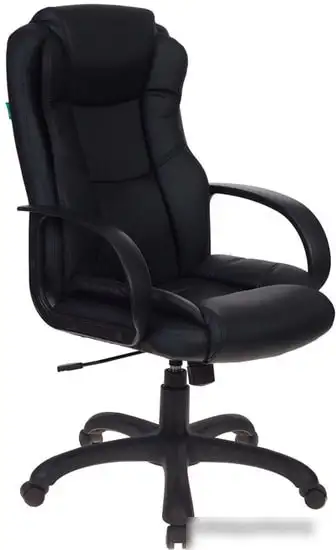 Кресло Бюрократ CH-839 (черный) предназначено для использования посетителями. Оно выполнено из искусственной кожи, легко очищается и выглядит стильно. Спинка цельная и включает подголовник для удобства шеи и голову. Есть подлокотники из пластика для комфортной опоры рук. Крестовина и пластиковые ролики позволяют легко перемещать кресло по ковролину. Газовая пружина регулирует высоту сиденья, а механизм качания DMS (Tilt) обеспечивает комфортное движение. Максимальная нагрузка составляет 120 кг, что делает кресло прочным и надежным. Оно не имеет регулировки наклона спинки и подголовника, но отличается простотой использования. Размер спинки — 52,5 см по ширине и 57,5 см по высоте. Регулируется высота сиденья в диапазоне 52,5–62,5 см для удобства любого пользователя.