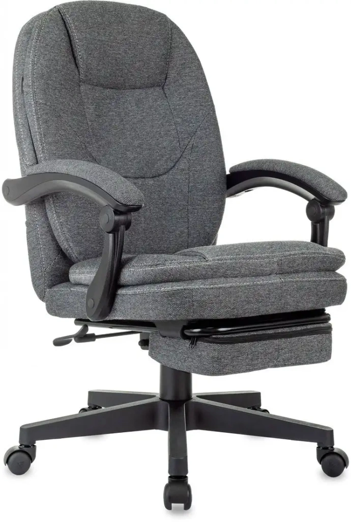 Офисное кресло Бюрократ CH-868MSG-BF выполнено из ткани и сетки, что обеспечивает комфорт и хорошую вентиляцию во время работы. Оно оснащено подголовником и подлокотниками, выполненными из ткани, что позволяет держать голову и руки в удобном положении. Кресло имеет регулируемый наклон спинки до 130 градусов и фиксируется в нужном положении, что помогает найти комфортный угол для отдыха или работы. Газовая пружина позволяет легко изменить высоту сиденья от 105 до 114.5 см, а синхромеханизм обеспечивает плавное качание и поддержку тела. Пластиковая крестовина и ролики для ковролина делают перемещение кресла легким и безопасным. Максимальная нагрузка достигает 120 кг, качественно выдерживая ежедневную интенсивную работу. В кресле отсутствуют функции регулировки подголовника, поясничного упора и глубины сиденья, что делает его простым и удобным в использовании.