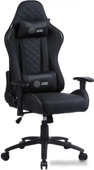Кресло CACTUS CS-CHR-030BL — это удобное игровое кресло, выполненное из искусственной кожи. Оно подходит для длительных игровых сессий благодаря регулируемому наклону спинки до 180° и подголовнику с подушкой. В кресле есть мягкие подлокотники с возможностью регулировки, что помогает уменьшить нагрузку на руки и плечи. Крестовина выполнена из металлического материала, а ролики с резиновым покрытием обеспечивают плавное движение по твердым покрытиям. Максимальная нагрузка кресла — 120 кг, оно устойчивое и долговечное. Также есть возможность регулировать поясничную подушку для поддержки спины и наклонять спинку для более комфортного положения.