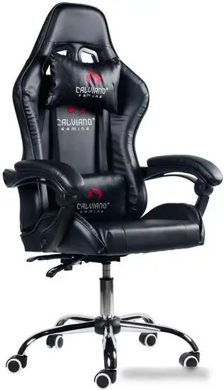 Кресло Calviano Asti Ultimato черного цвета создано для комфортных игр и работы. Оно имеет искусственную кожу на сиденьи и спинке, что обеспечивает легкую очистку и приятные ощущения. Модель оснащена подголовником и подлокотниками, которые можно настроить для индивидуальной поддержки. Благодаря металлической крестовине и газовой пружине, кресло устойчиво и легко регулируется по высоте. Механизм качания позволяет расслабиться во время отдыха, а резиновые ролики подходят для твердых покрытий. В кресле есть регулируемый наклон спинки и поясничный упор для комфортной посадки. Максимальная нагрузка составляет 120 кг, что делает его надежным. Также кресло имеет массажную функцию, которая помогает расслабиться после долгого дня. Ширина сиденья 54 см, высота спинки 83 см, а высота сиденья регулируется в диапазоне 48–56 см.