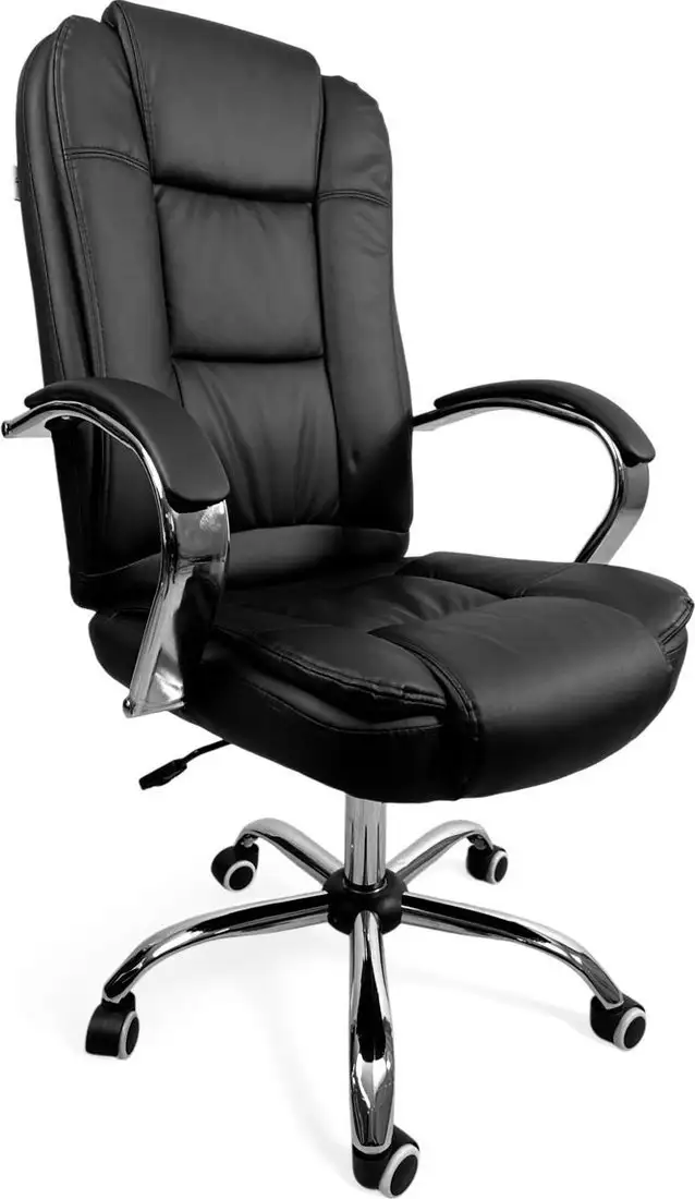 Офисное кресло Calviano Bravo в черном цвете удобно для работы и отдыха. Оно выполнено из искусственной кожи, что делает его прочным и легко чистимым. Кресло оснащено подголовником и подлокотниками для удобства при длительной работе. Металлическая крестовина и ролики обеспечивают устойчивость и легкий перемещения по офису. Газовая пружина и механизм Tilt позволяют регулировать высоту сиденья и наклон спинки. Оно имеет компактные размеры и вес около 15 кг. Это простое и удобное кресло подойдет для любого рабочего пространства.