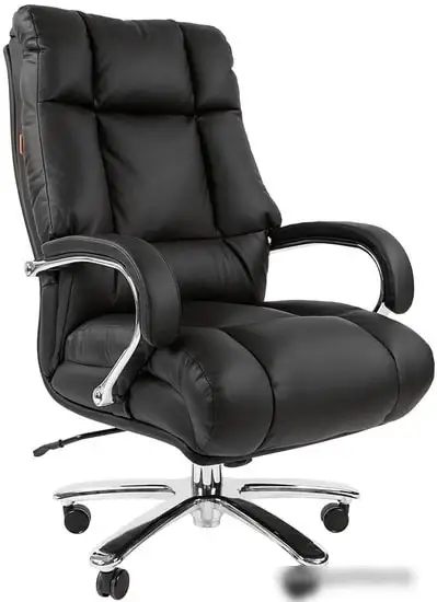 Кресло CHAIRMAN 405 создано для руководителей и отлично подходит для офиса. Оно выполнено из искусственной кожи, что делает его долговечным и легко моющимся. Кресло имеет подголовник и подлокотники для дополнительного комфорта, а также хромированную крестовину и пластиковые ролики, которые позволяют легко перемещать его по ковролину. Газовая пружина и механизм качания помогают регулировать высоту и наклон спинки, чтобы найти наиболее удобное положение. Максимальная нагрузка до 250 кг обеспечивает надежность и устойчивость. Цвет кресла — классический черный, он хорошо вписывается в любой офисный интерьер. Кресло не имеет функции массажера или регулировки наклона спинки, что упрощает его использование.