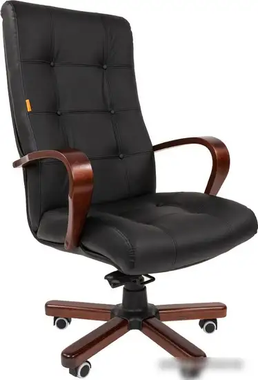 Кресло CHAIRMAN 424WD выполнено из натуральной кожи, что обеспечивает ему прочность и комфорт. Это кресло предназначено для руководителя и выдерживает нагрузку до 120 кг. Оно оснащено мягкими подлокотниками из пластика и имеет прочную крестовину с резиновыми роликами для твердых покрытий. Газовая пружина позволяет легко менять высоту сиденья, а механизм качания обеспечивает дополнительный комфорт во время работы. У кресла отсутствует подголовник и регулировки спинки по высоте или наклону, что делает его простым в использовании. Размеры кресла: ширина 67 см, глубина 70 см, высота до 124 см. Конструкция кресла прочная и долговечная, создавая удобную рабочую среду.