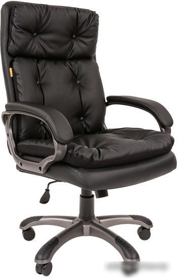 Кресло CHAIRMAN 442 в черном цвете предназначено для руководителей и отлично подходит для офиса. Оно выполнено из искусственной кожи, которая легко моется и долго служит. Модель оборудована подлокотниками и пластиковой крестовиной, что обеспечивает стабильность и комфорт. Газовая пружина помогает легко регулировать высоту сиденья в пределах 49-55 см. Механизм качания типа DMS (Tilt) позволяет установить кресло в удобном положении. Кресло выдерживает нагрузку до 150 кг и подходит для длительного использования. Колесики с резиновым покрытием позволяют легко перемещать кресло по твердым полам. Конструкция не имеет регулировки наклона спинки или фиксации в наклонном положении, что упрощает использование. Общие размеры обеспечивают комфортное пространство для пользователя без лишних функций.