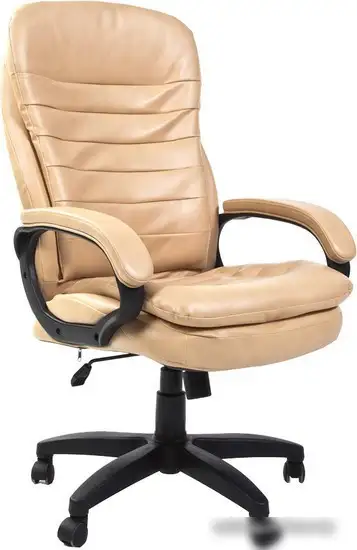 Кресло CHAIRMAN 795 LT выполнено из искусственной кожи бежевого цвета и предназначено для руководителя. Оно имеет цельную спинку и подголовник, чтобы обеспечить комфорт при работе. Есть подлокотники из искусственной кожи, а пластиковая крестовина и ролики подходят для ковролина. В кресле установлен металлический механизм качания и газовая пружина для регулировки высоты. Размеры кресла: ширина 67,5 см, высота спинки 68 см, высота опоры регулируется от 50 до 60 см.