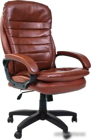 Кресло CHAIRMAN 795 LT в коричневом цвете отлично подходит для руководителя. Оно сделано из искусственной кожи и имеет цельную спинку с подголовником и подлокотниками для удобства. Кресло оснащено пластиковыми роликами для ковролина и пластиковой крестовиной. Механизм качания топ-ган (DMS) позволяет расслабиться и сменить положение тела. Также есть газовая пружина для регулировки высоты сиденья. Размеры кресла делают его комфортным и просторным для работы.