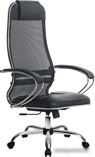 Кресло Metta SU-1-BK — это удобное и стильное решение для офиса. Оно предназначено для руководителя и выполнено из искусственной кожи, которая легко чистится и выглядит современно. В кресле есть подголовник и подлокотники, что обеспечивает комфорт при работе. Крестовина выполнена из металла, что делает его прочным и надежным. Механизм качания и газовая пружина позволяют настроить кресло по вашему весу и предпочитаемому режиму. Пластиковые ролики подходят для ковролина и легко катают кресло по рабочему пространству. Максимальная нагрузка устройства — 120 кг, что подходит большинству пользователей. Размеры и конструкция позволяют удобно сидеть и менять положение тела. В кресле отсутствует регулировка наклона спинки и подголовника, но оно остается комфортным для длительной работы.