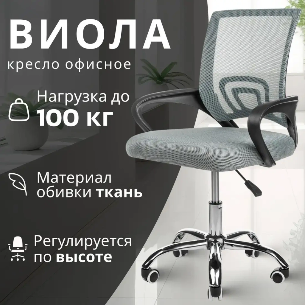 офисное кресло, спинка сетка, обивка: ткань, максимальная нагрузка 100 кг, ширина кресла 62 см
