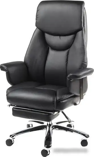 Кресло Norden Парламент H-2021-35 изготовлено из натуральной кожи черного цвета, что обеспечивает стильный внешний вид и долговечность. Оно предназначено для руководителя и отлично подходит для офиса. Кресло оснащено цельной спинкой, подголовником и подлокотниками для комфортной поддержки. Его хромированная стальная крестовина и пластиковые ролики позволяют легко перемещать устройство по ковролину.Газовая пружина облегчает регулировку высоты, а механизм качания обеспечит комфорт в течение рабочего дня. Фиксация в наклонном положении помогает сохранять нужный угол спинки. Максимальная нагрузка составляет 120 кг, что подходит большинству пользователей. Размеры конструкции позволяют легко вписаться в офисное пространство. Этот стул сочетает стиль и практичность, создавая удобную рабочую обстановку.