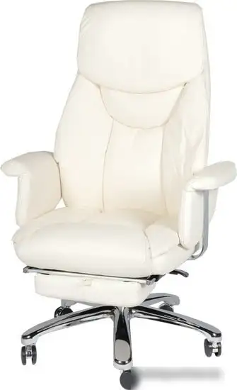 Кресло Norden Парламент H-2021-70-5 выполнено в элегантном цвете слоновая кость и идеально подходит для руководителей. Оно изготовлено из искусственной кожи, которая легко очищается и долговечна. Модель имеет цельную спинку, подголовник и подлокотники для комфортной работы. Для удобства кресло оснащено хромированной крестовиной и роликами, позволяющими легко перемещать его по ковролину. Газовая пружина помогает регулировать высоту сиденья, а механизм качания обеспечивает дополнительный комфорт во время отдыха. Фиксация в наклонном положении позволяет зафиксировать спинку под нужным углом. Максимальная нагрузка составляет 120 кг, что обеспечивает надежность и прочность. Это кресло поможет сосредоточиться и чувствовать себя комфортно весь день. Оно сочетает стильный дизайн с простыми функциями, пригодными для офисных условий. Его легко интегрировать в любой интерьер рабочего пространства.