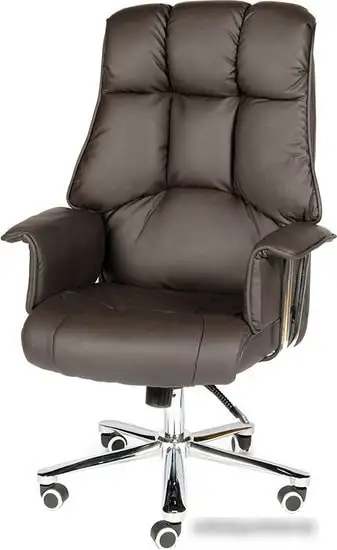 Кресло Norden Президент H-1133-322 выполнено из натуральной кожи в коричневом цвете, что придает ему элегантный вид. Оно предназначено для руководителя и обеспечивает комфорт при длкой работе за счет мягкой спинки с подголовником и подлокотниками из кожи. Кресло оснащено хромированной крестовиной и роликами из резины для твердых покрытий, что обеспечивает устойчивость и мобильность. Газовая пружина позволяет легко регулировать высоту, а механизм качания помогает снять напряжение. Фиксация в наклонном положении удержит кресло в выбранной позиции. Максимальная нагрузка — 120 кг. Размеры спинки – 74 см шириной и 69 см высотой, глубина опоры — 49 см. Это кресло отлично сочетает стиль и функциональность для домашнего или офисного использования. Оно не имеет массажной функции или регулировки наклона спинки. Обеспечивает долговечность и комфорт во время работы.
