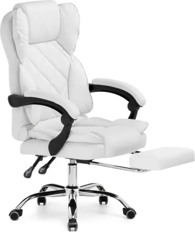 Офисное кресло Woodville Kolson белого цвета сочетает стильный дизайн и удобство. Оно выполнено из искусственной кожи, что делает его приятным на ощупь и легко очищаемым. Спинка кресла цельная и регулируется по наклону, что помогает найти оптимальный угол для отдыха и работы. В кресле есть подголовник и подлокотники, выполненные из искусственной кожи, для дополнительного комфорта. Металлическая крестовина обеспечивает стабильность, а пластиковые ролики подходят для использования на ковролине. Газовая пружина позволяет регулировать высоту сиденья в диапазоне от 48 до 58 см. Механизм качания с фиксацией в наклонном положении помогает снять напряжение за работой. Максимальная нагрузка составляет 100 кг, что подходит для большинства пользователей. Обивка и конструкция позволяют креслу прослужить долго и выглядеть аккуратно в офисе. Это кресло идеально подойдет для тех, кто ценит комфорт и стиль в рабочем пространстве.