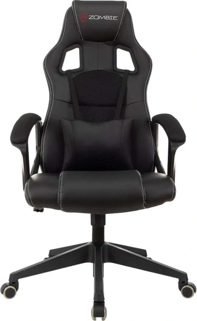 Это геймерское кресло Zombie Arena выполнено в черном цвете и сочетает ткань и искусственную кожу для приятной посадки. Оно оснащено цельной спинкой и подголовником с мягкой подушкой, что помогает лучше поддерживать голову и шею во время игры. Подлокотники выполнены из ткани и обеспечивают комфорт при длительных сессиях. Крестовина и пластиковая база делают конструкцию прочной и устойчивой. Газовая пружина помогает регулировать высоту кресла под ваш рост. Механизм качания с фиксацией позволяет выбрать нужное положение спинки, а регулировка поясничного упора поддерживает спину. Максимальная нагрузка до 120 кг гарантирует долговечность. Также есть возможность регулировки подголовника и поясничной подушки для индивидуального комфорта. Однако конструкция не предусматривает регулировку наклона спинки или глубины сиденья.