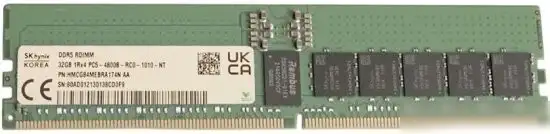 32 ГБ, 1 модуль DDR5 DIMM Registered, частота 4800 МГц, CL 40T, напряжение 1.1 В