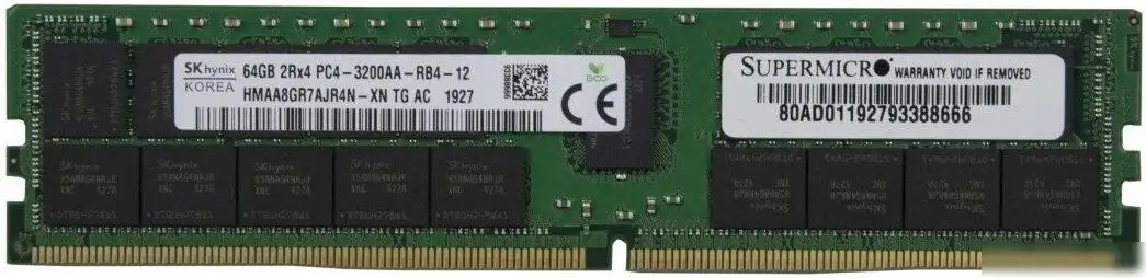 64 ГБ, 1 модуль DDR4 DIMM Registered, частота 3200 МГц, CL 22T, напряжение 1.2 В