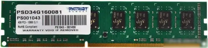 Оперативная память Patriot Signature 4GB DDR3 PC3-12800 (PSD34G160081)
