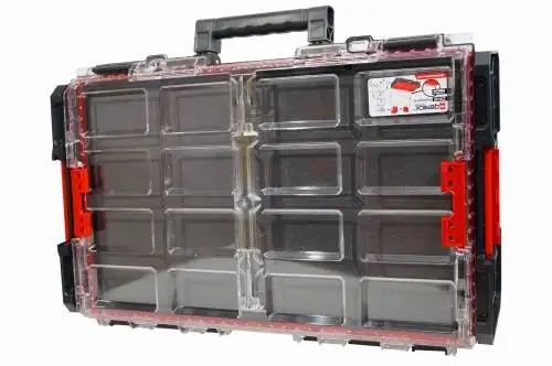 Этот ящик для инструментов Qbrick System ONE Organizer XL 2.0 MFI выполнен из прочного пластика и легко выдерживает ежедневную работу. Он имеет один вместительный отсек объемом 13,5 литров, что позволяет удобно хранить инструменты и мелкие детали. Встроенные замки из пластика обеспечивают безопасность содержимого, а петля для навесного замка позволяет дополнительно защитить инструменты. На внешней стороне ящика есть ручка из пластика для удобного переноса. Размеры ящика: длина 582 мм, ширина 387 мм и высота 131 мм — он подходит для хранения различных инструментов. Кроме того, ящик окрашен в яркие красный и черный цвета, что делает его хорошо заметным в работе. Внутри отсутствуют съемные лотки или делители, поэтому вам потребуется организовать пространство самостоятельно.