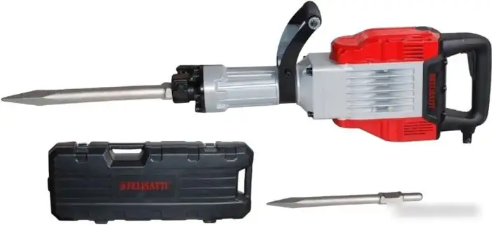 Отбойный молоток Felisatti М-25/1500В — это мощный электроинструмент с мощностью 1 500 Вт и энергией удара 45 Дж, который отлично подходит для тяжелых строительных работ. Он работает без регулировки скорости и реверса, что делает его простым в использовании. Благодаря комплекту с различными насадками — пикой, зубилом и кейсом — вы получите все необходимое для выполнения разных задач. Корпус и рукоятка обеспечивают удобный захват, а прочные материалы гарантируют долгий срок службы. Этот инструмент весит 16 кг, что делает его стабильным и надежным в работе.