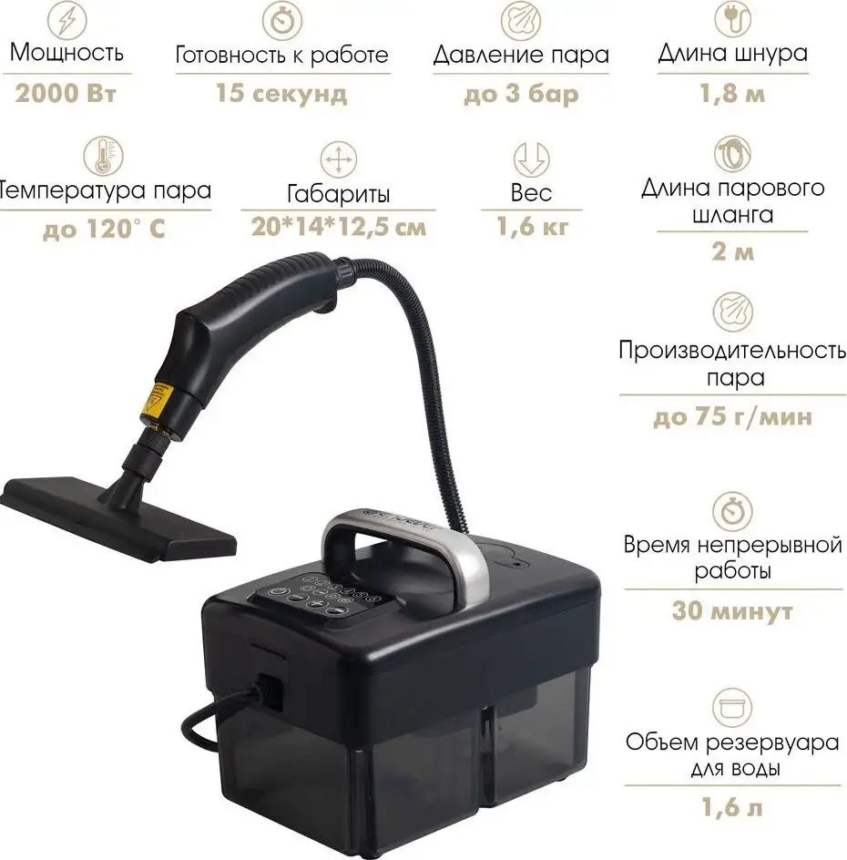 пароочиститель, напольный, 2000 Вт, резервуар: 1.6 л