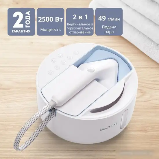 Отпариватель Galaxy Line GL6287 (небесный) предназначен для бытового использования и выполнен в ручном стиле. Он позволяет быстро нагреваться за 1.3 минуты и обеспечивает мощность 2500 Вт для эффективной уборки одежды. Максимальное давление пара составляет 3.5 бар, а выход пара — до 45 г/мин, что помогает легко разглаживать даже сложные складки. Устройство имеет пять режимов работы, что позволяет регулировать расход пара в зависимости от ткани. Объем резервуара для воды составляет 0.6 литра, его хватает на длительную работу без частой заправки. В комплект входят насадки, включая щетку для очистки ткани и насадку для деликатных тканей. Длина шнура питания — 1.8 метра, что обеспечивает комфортное использование без преимуществ. Основные функции помогают быстро и безопасно ухаживать за одеждой в домашних условиях.