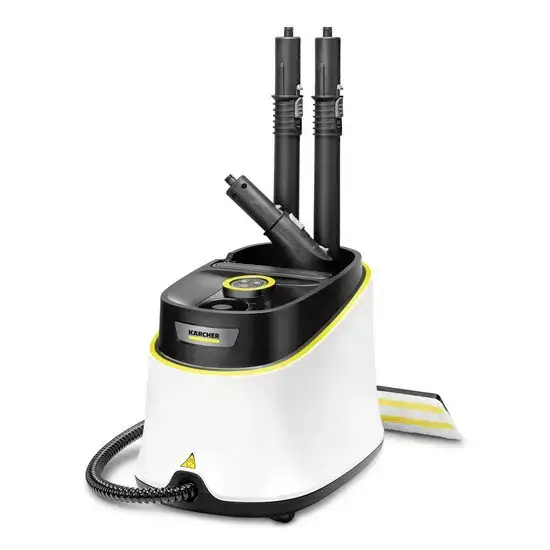 Пароуочиститель Karcher SC 3 Deluxe — это удобный прибор для бытовой очистки дома. Он быстро нагревается всего за 0,5 минуты, что позволяет сразу приступить к уборке. Мощность насоса 1900 Вт создает давление пара до 3,5 бар, что помогает легко удалять грязь и налет. В комплект входят разные насадки, например, для очистки окон, полов и мягкой мебели, что делает его универсальным. Объем резервуара 1 литр обеспечивает долгую работу без частой заправки. На корпусе есть регулятор расхода пара и предохранительный клапан для безопасной эксплуатации. Также есть блокировка для детей, что повышает безопасность использования.