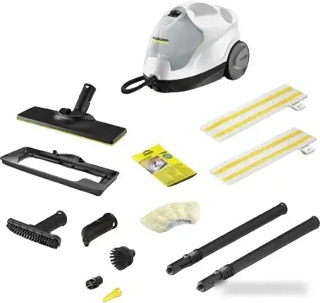 | Дополнительные насадки и приспособления | - Универсальная салфетка для пола EasyFix: 2 шт. - Микроволоконная обтяжка для ручной насадки: 1 шт. - Порошковый антинакипин: 3 шт. - Точечное сопло - Ручная насадка - Мощное сопло - Малая круглая щетка (черная): 1 шт. - Большая круглая щетка - Насадка для пола: EasyFix? - Удлинительные трубки (2 ? 0,5 м) - Накладка для освежения ковров |
