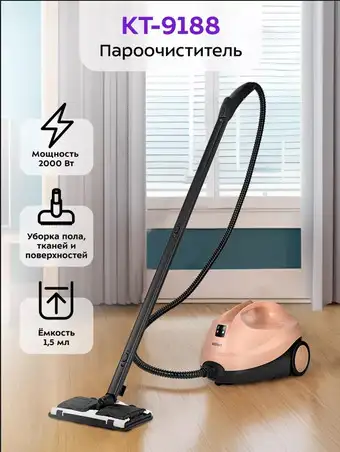 Пароочиститель Kitfort KT-9188 — это удобное устройство для домашней уборки. Он работает от электросети и быстро нагревается за всего 6 минут, готовый к использованию. Мощность нагревателя составляет 2000 Вт, а давление пара достигает 4 бар, что помогает эффективно очищать поверхности. Устройство оснащено резервуаром объемом 1,5 литра, а также дополнительным резервуаром для продолжительной работы. В комплект входит различные насадки, такие как паровой пистолет, насадка для окон и пола, чтобы убрать грязь и пыль в разных местах. Благодаря длинному шлангу и шнуру, пользоваться пароочистителем удобно даже в труднодоступных местах. Этот пароочиститель идеально подходит для уборки мягкой мебели, окон, полов и других поверхностей в доме.