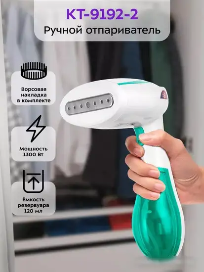 Отпариватель Kitfort KT-9192-2 предназначен для быстрой и безопасной обработки одежды дома. Он работает мощностью 1300 Вт и обеспечивает поток пара до 20 г/мин, что помогает легко разгладить складки и избавиться от запахов. Устройство компактное и лёгкое, его вес всего 0.9 кг, а размер – всего 24 × 17 × 12 см, что облегчает хранение и использование. В набор входит резервуар на 0.12 л, который легко заполняется водой, а так же ворсовая насадка для деликатных тканей. У отпаривателя отсутствует режим парового удара и блокировка от детей, поэтому важно соблюдать осторожность при использовании. Он оснащён длинным шнуром питания длиной 1.7 м, что обеспечивает удобство при работе. Простая конструкция не содержит телескопической штанги или вешалки, но наличие специальной щётки помогает аккуратно обрабатывать ткани. Устройство комплектуется руководством и дополнительными насадками, что помогает добиться лучших результатов при уходе за одеждой.