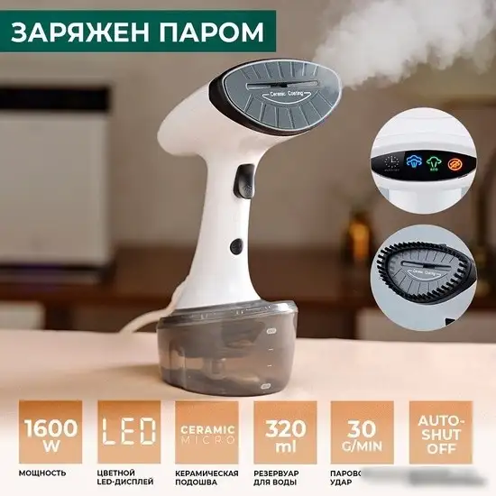 отпариватель, ручной, 1600 Вт, резервуар: 0.32 л